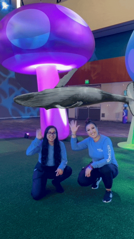 Attendees at Zoomtopia entered the mushroom forest then scanned a QR to bring Happy (Zoom's mascot whale) to life in their own photo opportunity!