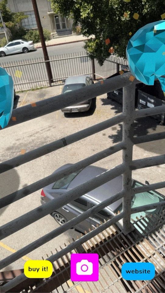 Experience augmented reality (AR) by scanning the QR code with your mobile device. Immerse yourself in a digital world populated by polygonal skulls with sparkling diamond eyes. Point your device at the QR code and allow camera access. Look through the viewfinder to see yourself surrounded by the skulls. Use index finger - press to move them around and pinch gestures to scale the skulls.